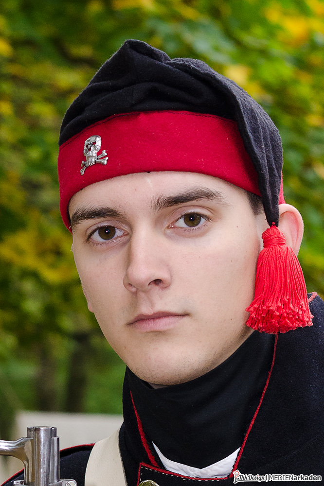 Christian kam vor 2 Jahren zum Hobby, weil er als Besucher ein Event erlebte, und begeistert vom Erlebten und dem Wunsch selbst „mittendrin statt nur dabei“ zu sein, von seiner Frau ein bestätigendes “Na mach es doch einfach!“ hörte. Für Ihn ist sein Hobby gelebte Völkerverständigung, denn anders als damals, bekriegt man sich nicht, sondern sitzt zusammen, lernt sich über Sprachbarrieren und Ländergrenzen kennen und (er)lebt Geschichte. Tobias (20) wuchs u.a. mit den Spielen, Filmen und Büchern zur Napoleonischen Zeit auf, beschäftigte sich zuerst mit LARP, wechselte dann aber zum historisch korrekteren Reenactment.