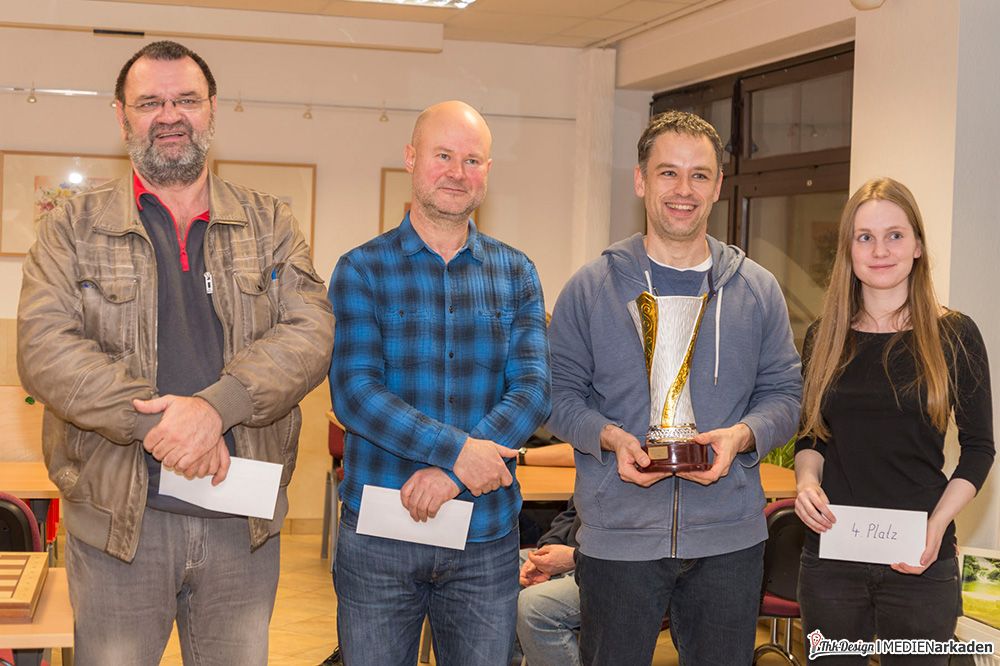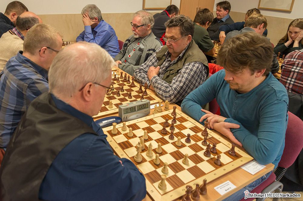 Vor Beginn der punktrelevanten „Duelle“ begrüßte der Vereinsvorsitzende Olaf Dening die Anwesenden und wünschte spannende Partien. Die ersten 3 Runden nahmen den erwarteten Verlauf, in Runde 4 gab es eine erste Überraschung mit dem bis letzten Zug spannenden Spiel und anschließenden verdienten Sieg des Löberitzer Norman Schütze (ELO 2268) gegen Großmeister Christian Bauer (ELO 2631). In Runde 5 und 6 gab es ein wenig Hin- und Her und die endgültigen Platzierungen waren noch nicht absehbar. In der 7. und letzten Runde jedoch setzten sich die erfahrenen Favoriten allesamt durch und sicherten sich damit die ersten Plätze.