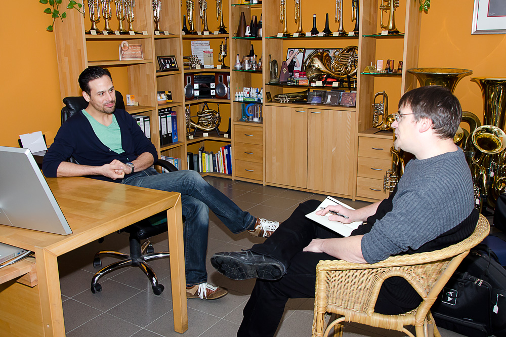 Matthias Vogt, der Inhaber, begrüßte uns sehr freundlich und während ich im bequemen Korbsessel Platz nahm, checkte Thomas bereits seine Kamera durch und fing an spannende Blickwinkel und glänzende Details auf Bild zu bannen. Wir plauschten ein wenig über dies und das, wobei sich das Gespräch sehr schnell und ganz von allein auf die Themenbereiche verlagerte, weshalb wir uns zusammensetzen wollten. Von Beginn an fiel mir auf, das ich es mit einer Person zu tun hatte, die nicht nur Geschäftsmann ist, sondern mindestens ebenso sehr Handwerker aus Berufung und Musiker aus Leidenschaft. Mit strahlenden Augen und viel Enthusiasmus sprachen wir über seinen Werdegang, den Aufbau des Geschäfts, Zukunftspläne uvm. Doch „der Reihe nach“.