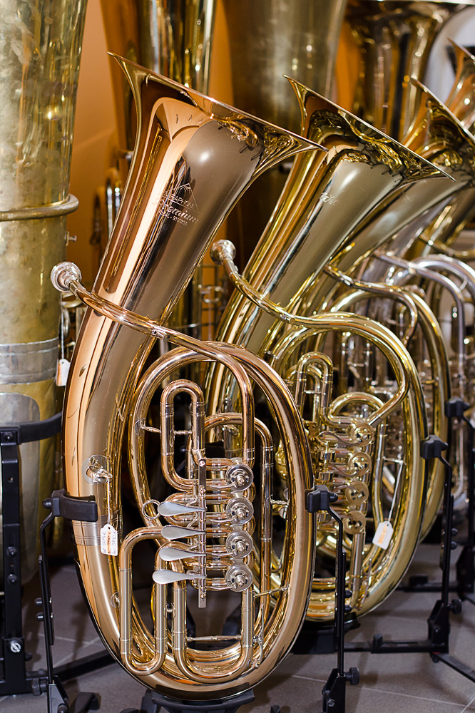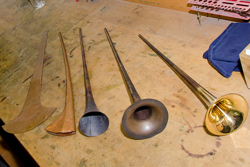 Wir nutzen jedenfalls die Gelegenheit einem solchen Handwerker über die Schulter zu schauen. Geduldig erklärte man uns die einzelnen Werkzeuge, wann welche zum Einsatz kommen, welche Arbeitsschritte notwendig sind, um aus einem Stück Blech eine Trompete oder Tuba zu erzeugen. Es war faszinierend zu sehen, wie aus einem unschönen arg ramponierten, verbeulten Objekt mit Fingerspitzengefühl und Erfahrung wieder ein glanzvolles Instrument wird.