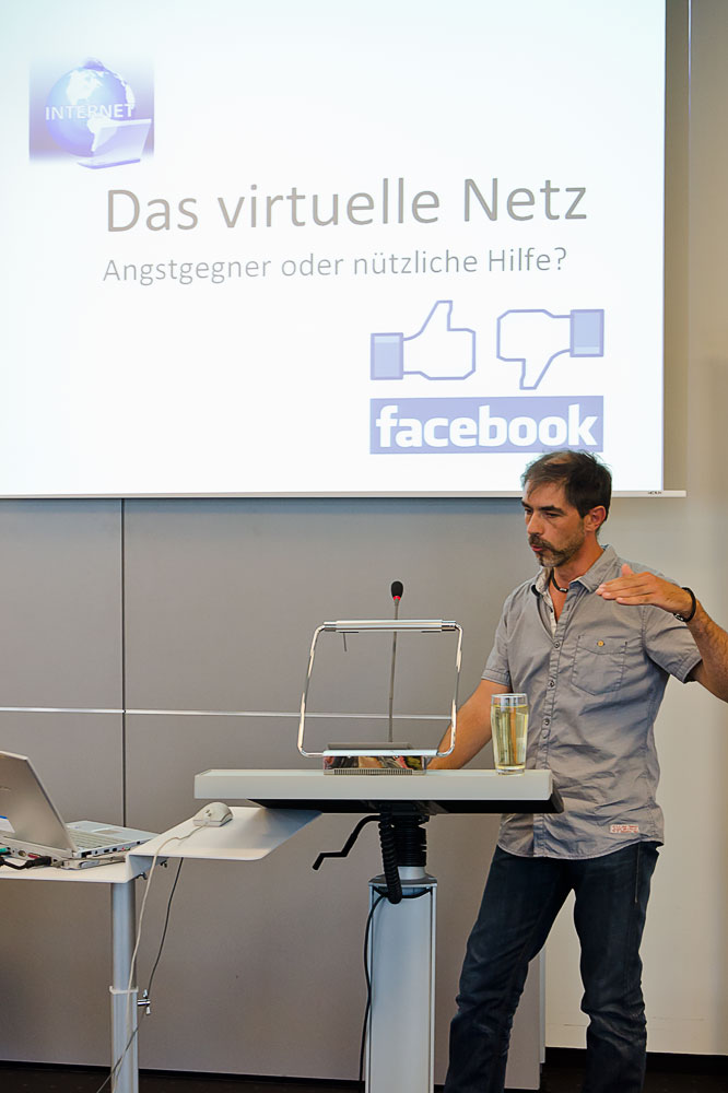 Herr Möslein wurde abgelöst von Sven Gückel, seines Zeichens selbstständiger Fotograf und Journalist. Sehr authentisch berichtete er über seine persönlichen Erfahrungen, Anfängerfehler und Neustarts mit Webseiten, Facebook-Profilen und Fan Pages. Sein Vortrag wurde sehr gut angenommen, weil der Annaburger offen zeigte, wie viel Ausdauer man mitbringen muss, um sich nötiges Wissen anzueignen, den richtigen Weg zu entdecken und sich zu etablieren. Nach Anfangsschwierigkeiten nutzt er mittlerweile ganz selbstverständlich Facebook zur Vermarktung, Auftragsgenerierung und Imagepflege. Sein eindeutiges Fazit: Keine Angst vor Facebook!