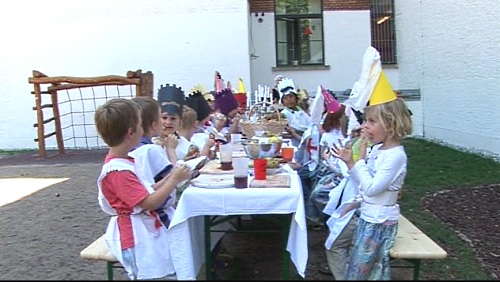 Für jeweils mehrere Wochen (4-6) stand die Arbeit unter einem Thema wie z.B. Mittelalter. Die Jungen durchlebten dann eine Knappenausbildung, die Mädchen wurden zu Burgfräulein und Hausherrin. Passend dazu studierte man Tänze und Gesänge ein, bastelte, verkleidete, übte aber auch mit den Kindern Gruppenverhalten und soziale Kompetenzen.