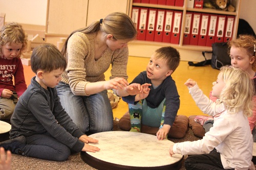 Musikpädagogen beobachteten die Kinder während des Tages und in Gruppensituationen und bauten die Erkenntnisse in Ihre Arbeit mit ein. So entstand ein intensives Geben und Nehmen, Lehren und Lernen zwischen den Erwachsenen und Kindern.