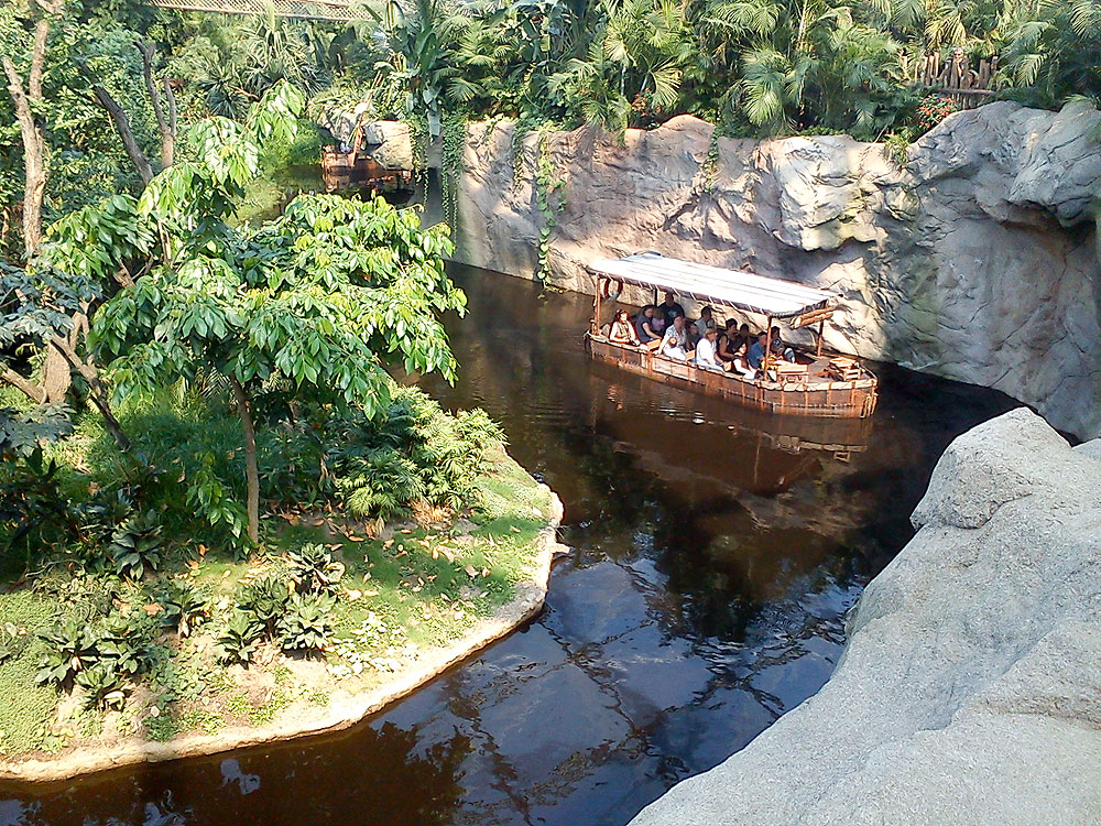 Eine kurze Stärkung später (der Eisstand kam uns diesbezüglich sehr gelegen…) wandten wir uns der Anlegestelle zu. Ein zusätzlicher Obolus (1,50€/ Erwachsener und 1€/ Kind) ist durchaus gerechtfertigt und die Wartezeiten kürzer als die Schlange vermuten lässt. Mit einem von 10 Booten begibt man sich auf eine Reise durch die Geschichte des Urkontinents. Durch eine dunkle Grotte gleitend wird mit modernsten Mitteln vom Kontinent Gondwana, heutigen Ur- und Regenwäldern und deren massive Gefährdung durch Rodung und Raubbau berichtet. Der Rest der Route führt auf dem Wasserwege nochmals an vielen Gehegen vorbei und endet nach etwa 10min.
