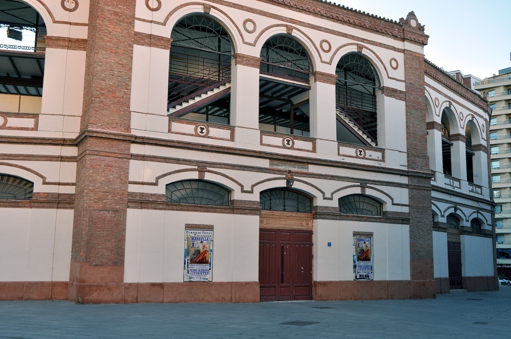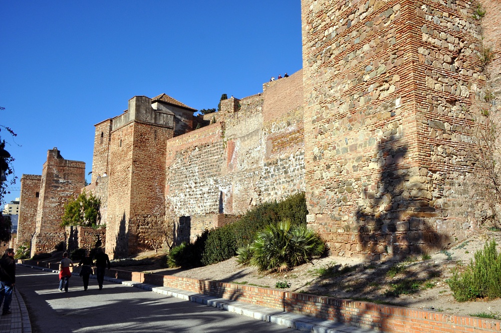 Eigentlich wollten wir mit Malaga-Tour oder Linienbus den Weg durch Málaga abkürzen oder uns zumindest auf das Castillo bringen lassen. Beides funktionierte nicht, da die Busse erst ab 09:30 Uhr starteten. Viel zu spät bei der kurzen Schiffsliegezeit. Als entschieden wir zunächst für den Besuch des Teatro Romano. Doch auch hier das Gleiche; wir waren mit 9:00 Uhr zu zeitig am Eingang, geöffnet erst ab 9:30 Uhr. Also gingen wir weiter, durch den Tunnel Bajo Alcazaba zurück in Richtung Plazza de Toros La Malagueta . Diesmal wollten wir nicht unbedingt rein, sondern einfach nur einige Fotos der Stierkampfarena schießen. Also einmal rings herum und dann auf einem sehr gut gepflasterten Wanderweg am Berg hinauf zum Castillo.