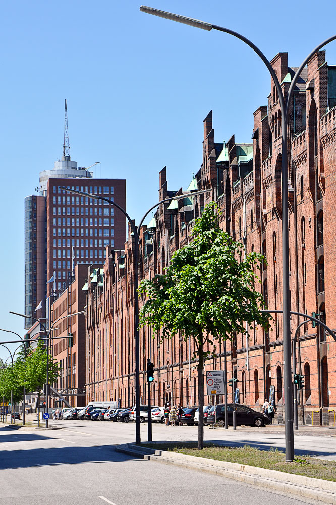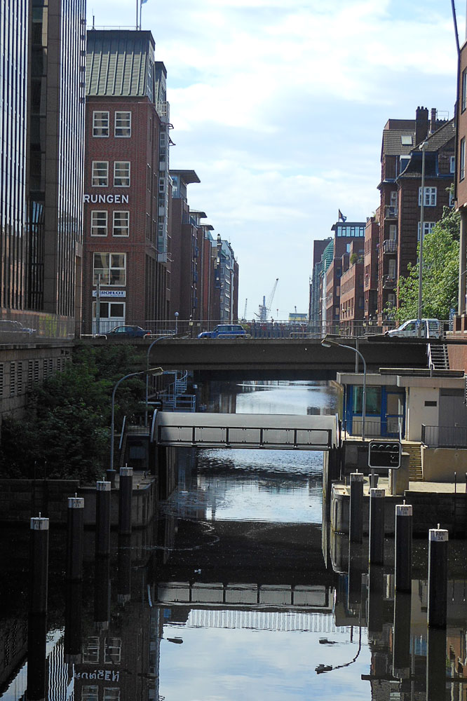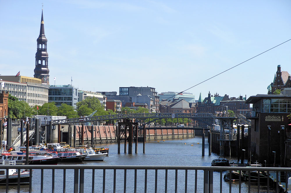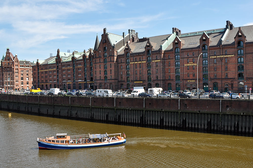 Mit der S3 ging‘s nach Langenfeld, von da aus zu Fuß zum Hotel. Dank modernen Handys und Google Maps ist die „Navigation“ in fremden Städten heutzutage überhaupt kein Problem mehr. Die Koffer wurden schnell abgestellt, dann zog es uns voller Neugier in die Innenstadt. Ab Landungsbrücken betätigten wir uns wieder als Fußgänger und folgten der Nordelbe zur Speicherstadt. Das ist ein über 100 Jahre alter Lagerhauskomplex, der auf Eichenpfählen ruht. Seit 1991 unter Denkmalschutz stehend erfreut sich dieser Komplex aus schönen Backsteinhäusern, die mittels dutzender Brücken verbunden sind wachsender Beliebtheit und beherbergt einige interessante Museen. Unübersehbar auch die Baustelle der Elbphilharmonie, die architektonisch…hmm, ungewöhnlich…ist.