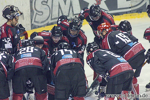 Während einer Konzeptbesprechung mit dem Betreuer des Gündernetzwerkes erklärte mir dieser, dass sein bester Freund bei der zweiten Mannschaft des Hallenser Eishockeyvereins “Saale Bulls” spiele und sich dort alle richtig freuen würden, wenn ich mal zu einem Training komme. Das kam wie ein Faustschlag in mein “Ich-spiele-nie-wieder-Eishockey-Gesicht”! An diesem Abend sass ich mit meiner Frau beim Abendessen und erklärte ihr die neuen Entwicklungen in unserem “Hallenser” Leben. Die Antwort können sich bestimmt alle denken: “Aber Du wolltest doch nie wieder Schlittschuhe anziehen!” Natürlich hatte ich das zwei Jahre vorher gesagt. Und irgendwie wollte ich mir treu bleiben. Der Beschluss des Abends war, dass ich nicht an besagtem Training teilnehmen werde. Die Wochen verstrichen und die nächste Konzeptbesprechung stand an. Natürlich kam sofort die Frage, ob ich denn das Training besucht hätte. Kleinlaut und irgendwie verunsichert gab ich zu verstehen, dass ich eigentlich nicht mehr spielen wollte. Das verstand der Herr von Univations gar nicht. Auch aus Mangel an Begründungen meinerseits (für das Fernbleiben von besagtem Training) erklärte er mir, dass ich doch einfach mal hingehen, mit seinem “Kumpel” ein paar Worte wechseln und mich dann entscheiden sollte… Nach Rücksprache mit meiner Frau bewegte ich mich dann eines Montagabends in Richtung Volksbank Arena. Ein vertauter Geruch umwehte mich im Kabinentrakt, bestens bekannte Gesprächsfetzen flogen mir entgegen und plötzlich fand ich mich in einer geliehenen Ausrüstung wieder, auf dem Weg zur Eisfläche…