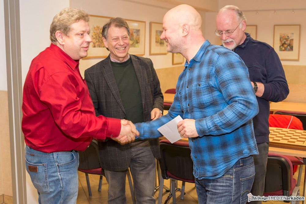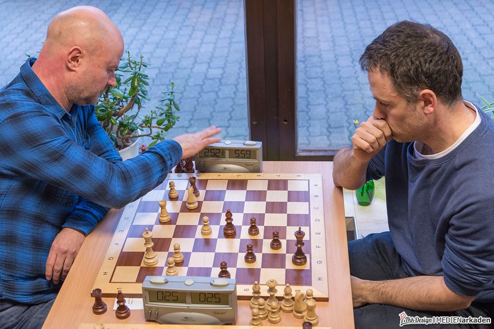 Vor Beginn der punktrelevanten „Duelle“ begrüßte der Vereinsvorsitzende Olaf Dening die Anwesenden und wünschte spannende Partien. Die ersten 3 Runden nahmen den erwarteten Verlauf, in Runde 4 gab es eine erste Überraschung mit dem bis letzten Zug spannenden Spiel und anschließenden verdienten Sieg des Löberitzer Norman Schütze (ELO 2268) gegen Großmeister Christian Bauer (ELO 2631). In Runde 5 und 6 gab es ein wenig Hin- und Her und die endgültigen Platzierungen waren noch nicht absehbar. In der 7. und letzten Runde jedoch setzten sich die erfahrenen Favoriten allesamt durch und sicherten sich damit die ersten Plätze.